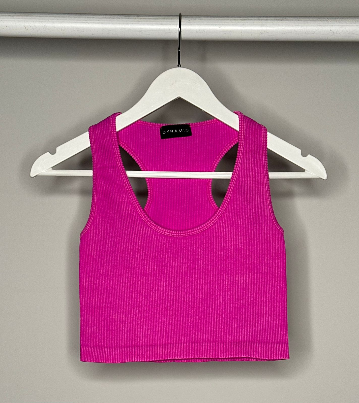Conjunto deportivo de material suave estilo rib que se amolda a tu figura. Disponible sólo en talla estándar.